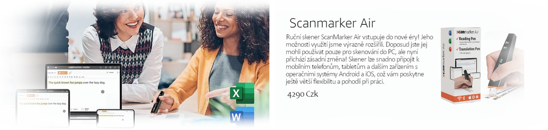 Zapomeňte na klasický způsob skenování. Ruční skeneryScanMarker jsou jediné v České republice, které skenují text a přenášejí skenovaný text jako textový soubor. Jednoduše pokud skenuji tištěný text (smlouvu, fakturu, knihu, dokument ) text přenášený při skenování se v textových programech znázorňuje ne jako forma PDF, ale jako psaný text a rovnou s tímto naskenovaným textem mohu pracovat.